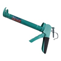 Пистолет для герметика стальной полукорпусной 310 мл с цилиндрическим отсеком и круглым зубчатым штоком обеспечивает четкое нанесение смеси. Пистолет предназначен для нанесения шовного герметика низкой и средней вязкости.