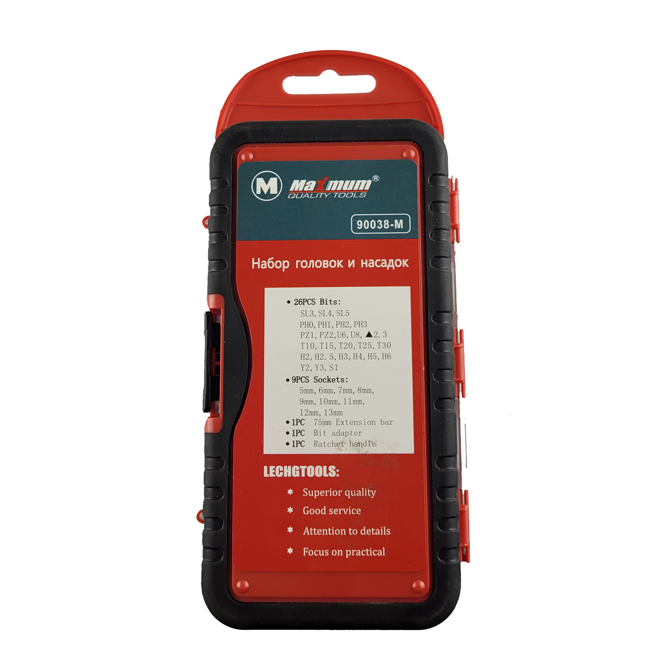 Набор головок и насадок 38 предметов "MAXIMUM", мини применяется для сборки, ремонта, монтажа или демонтажа резьбовых соединений, поэтому он будет полезен как в автомастерской, так и дома.