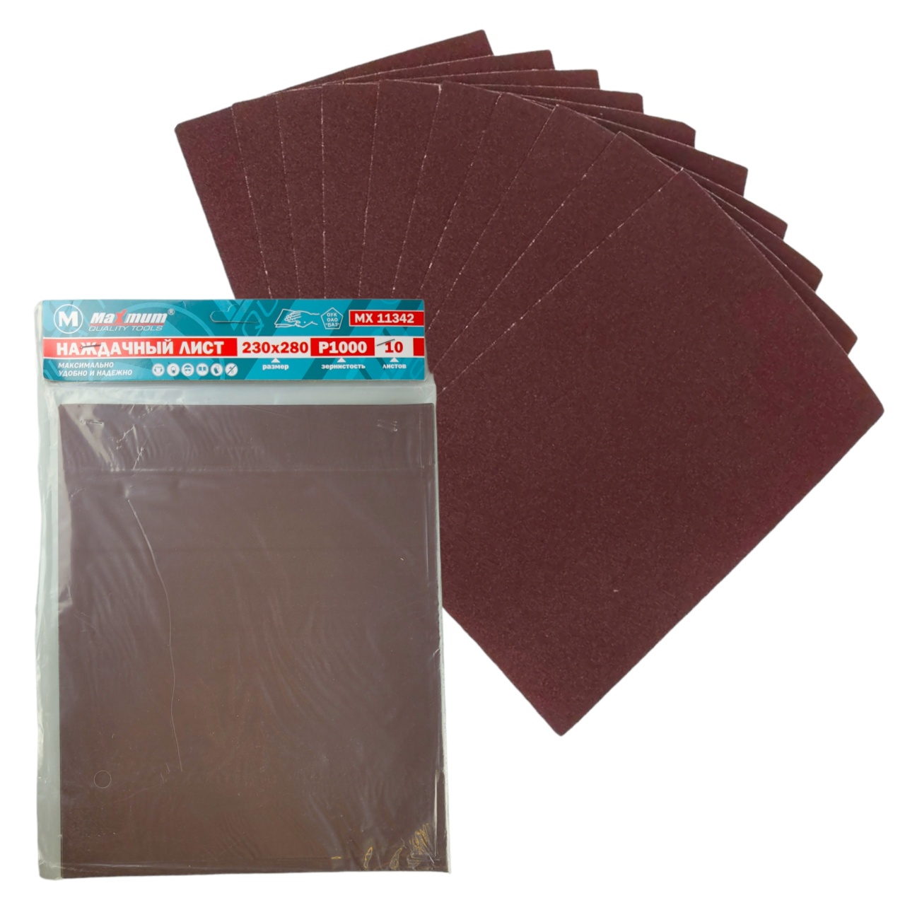 Наждачная бумага P 1000, 230x280 мм, 10 листов, бумажная основа, "MAXIMUM" MX 11342